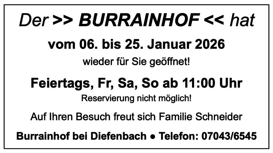 Wir haben für Sie an folgenden Tagen geöffnet: